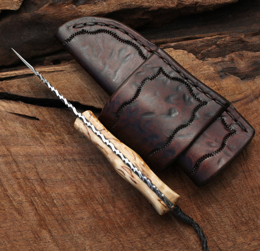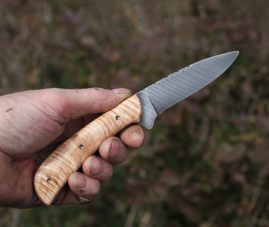 From the mountains of North Idaho. Saw steel is recycled from the local wood mills and reborn. Blades are forged, shaped, reground and heat treated, handles are fitted and a custom leather sheath is made. All processes are done by myself in my home shop. Sometimes called “works of art”, I like to say “user friendly art”, as they are made to be used, not just admired. Handcrafted knives make great family heirlooms or gifts for that business colleague that has everything. A pleasure to use, real knives that hold an edge and are easy to sharpen. Sharpening strop is included with most knife purchases.