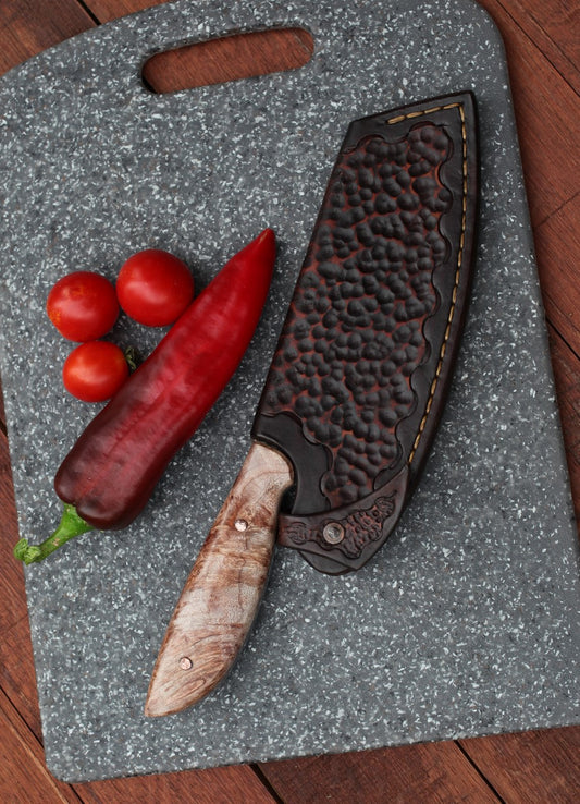 6.5 inch Camp/chef knife, blue Ponderosa pine