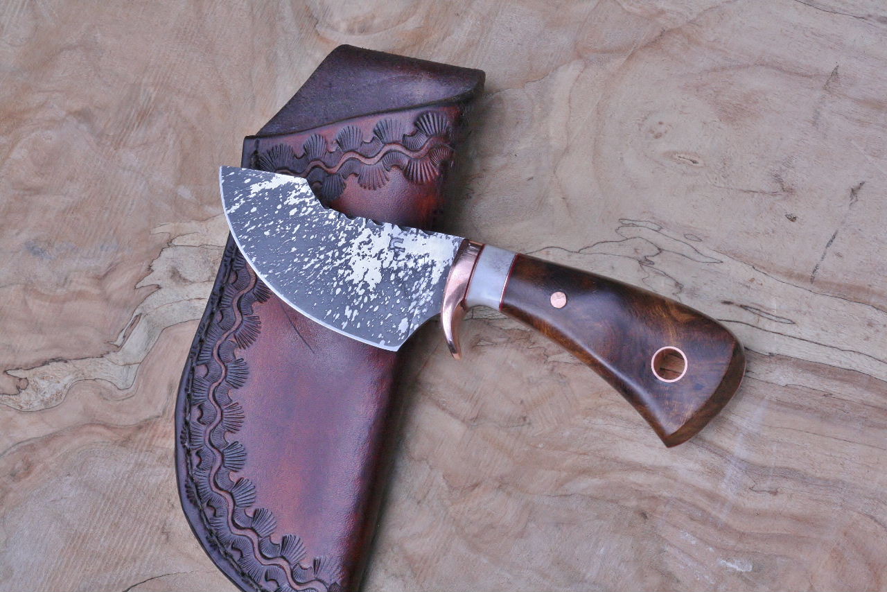 - 10 oz. weight leather sheath is wet formed and custom for this knife. Knife " pops ' into sheath.