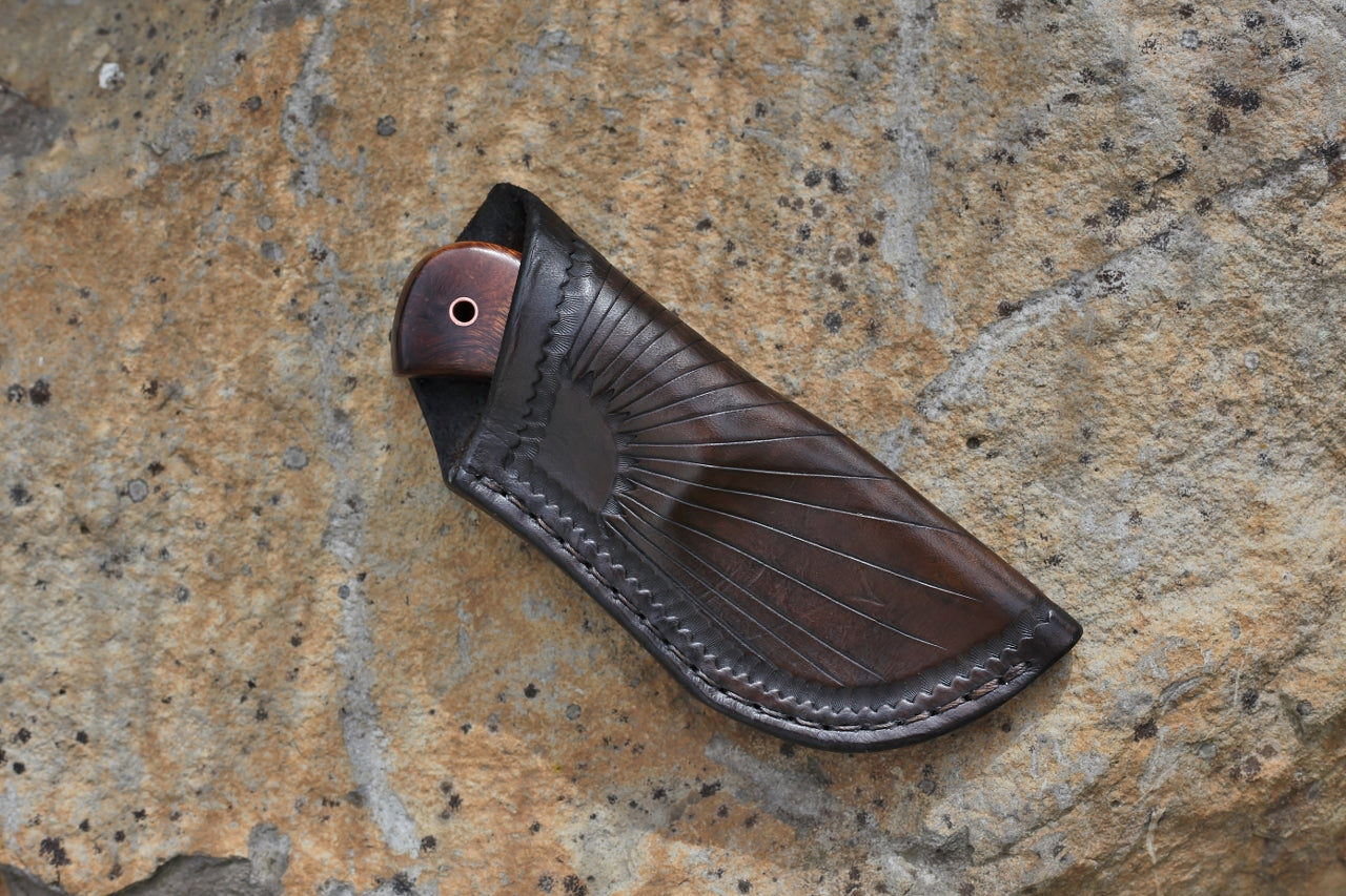 - 9 oz. weight leather sheath is wet formed and custom for this knife.