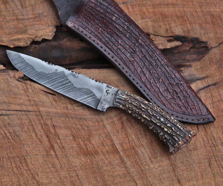 - Handle is nicely textured Sambar stag with poured pewter guard.