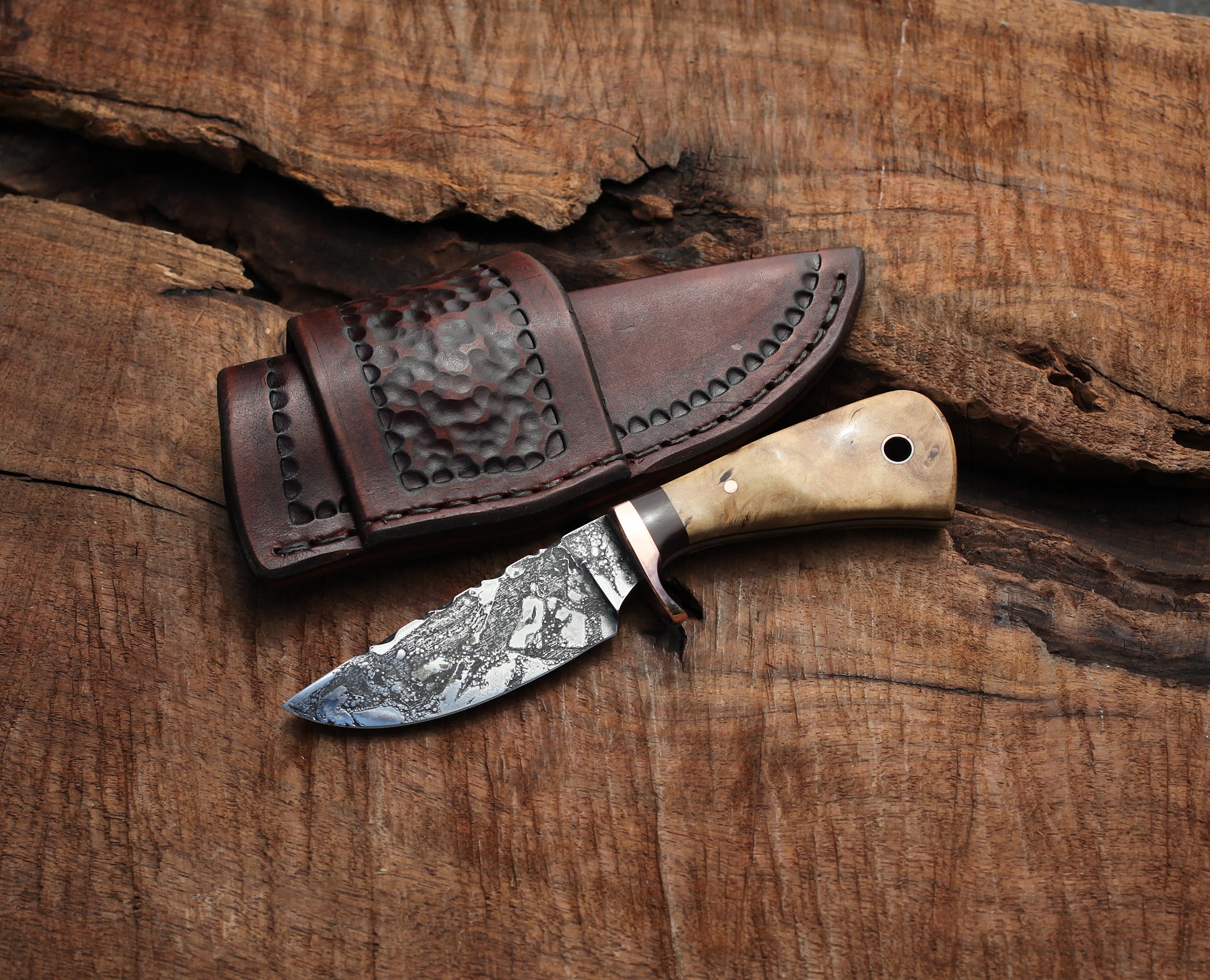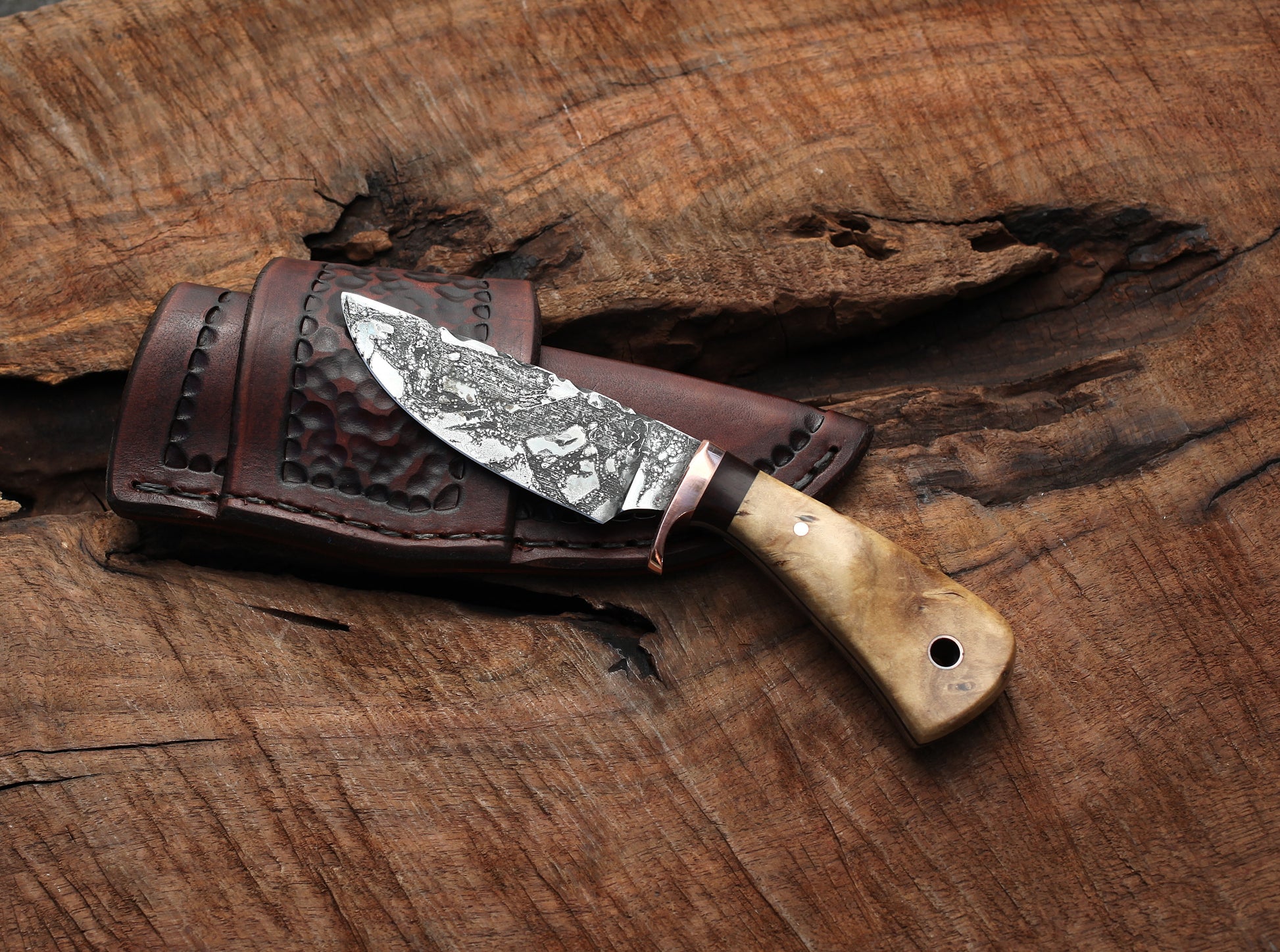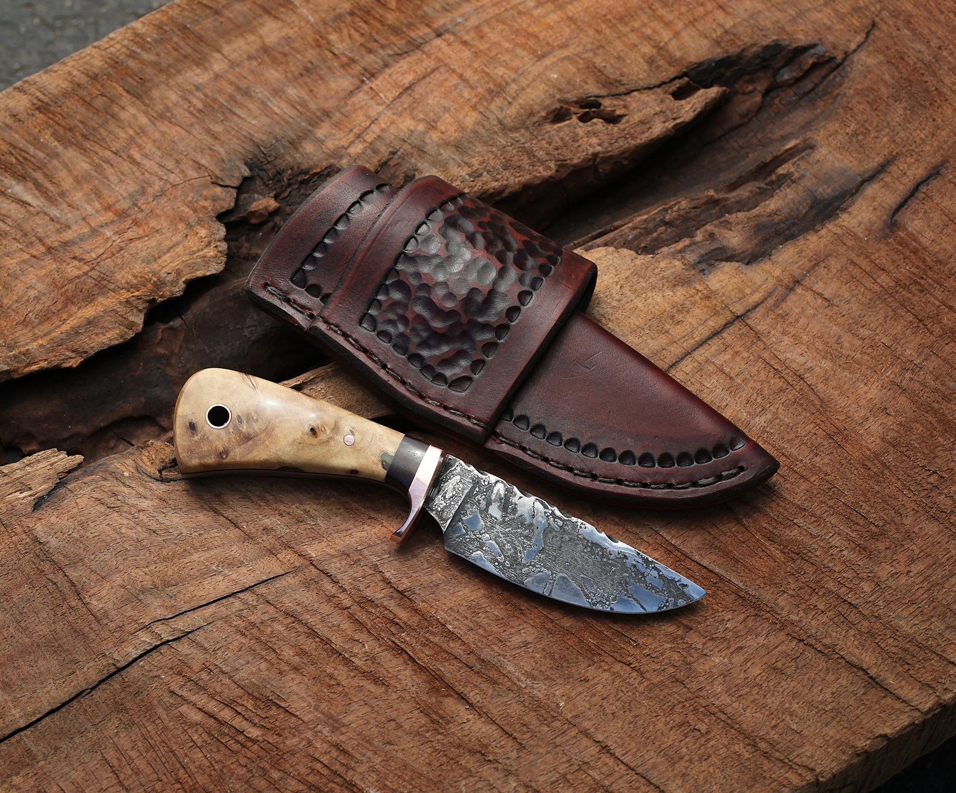 Custom 3 Finger Utility/Hunter. cottonwood burl, EDC
