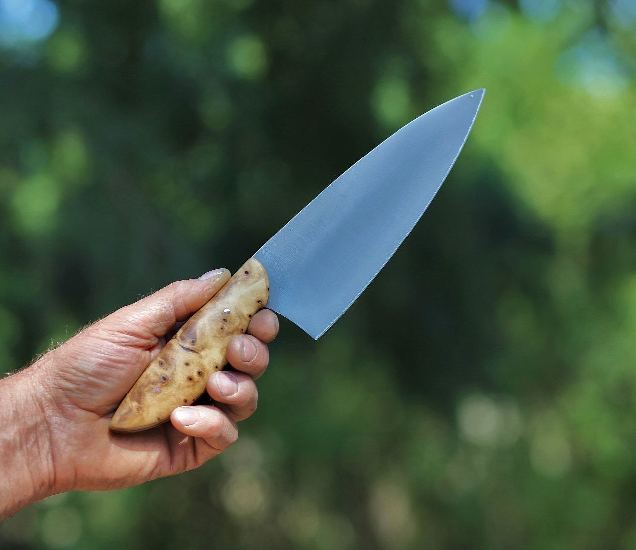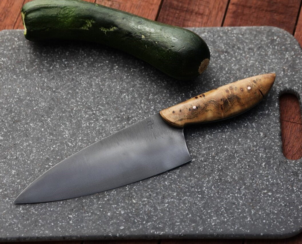 - Previous customers say this knife and the camp/chef becomes their favorite most used knife in the kitchen. You can spend less on a Henckels or Wusthof but this knife will feel better in your hand and be much easier to keep sharp. A couple passes on the strop every week or so, takes about 10 seconds to keep it hair shaving sharp. See my sharpening instructions here. The sharpening strop comes with the knife.