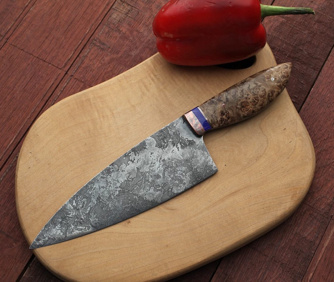 Custom 7.5 inch Chefs knife, maple burl, agate