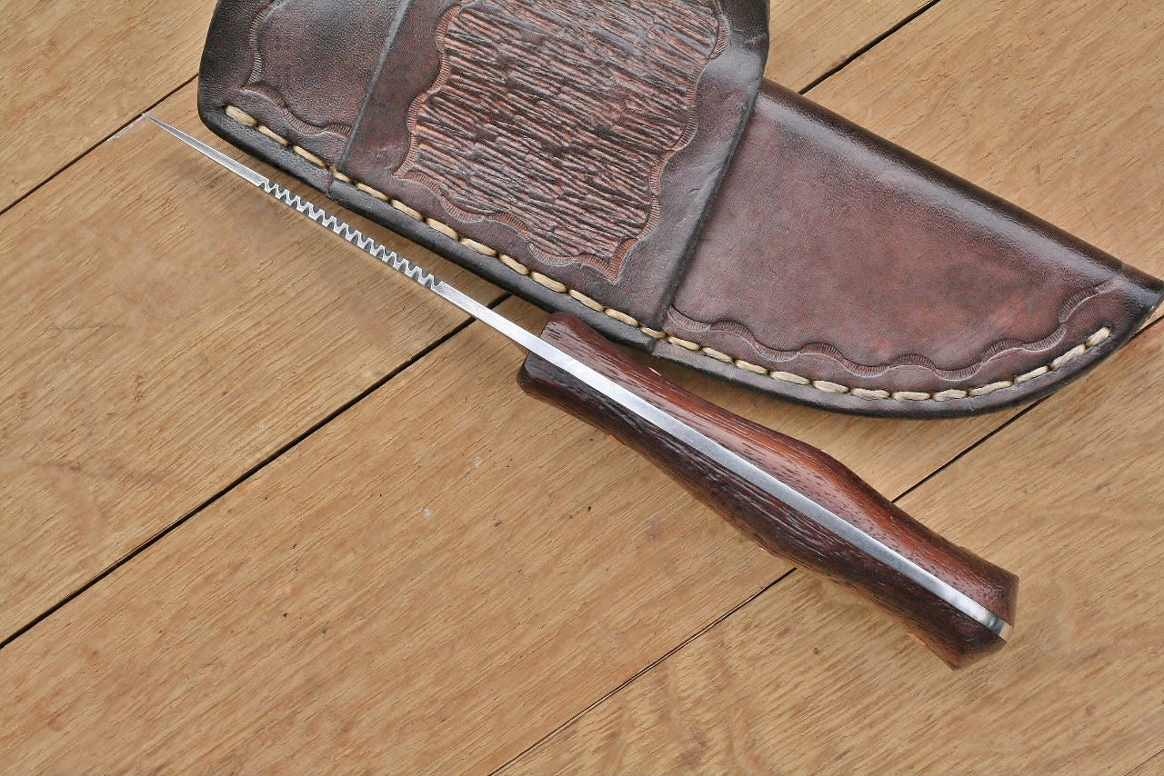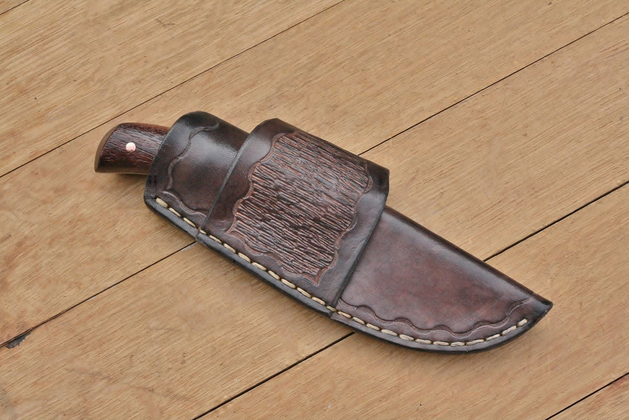 - Horizontal carry leather sheath is custom for the knife. Worn on the left front for right hand draw. Concealable under a long shirt.