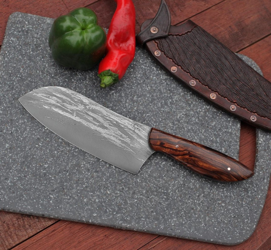 Keywords: etched carbon steel, knives, gourmet, kitchen, culinary, light cleaver, best kitchen knives, cooking, cutting board, dice, slice, restaurant, master chef, sushi, gourmet, cuisine, henkels, wusthof, shun, L6, nessmuk, custom, santoku