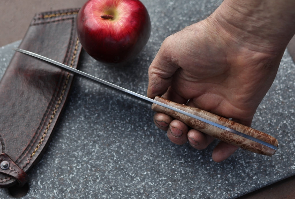 - Previous customers say this knife becomes their favorite most used knife in the kitchen. You can spend the same amount or more on a Henckels or Wusthof but this knife will feel better in your hand and be much easier to keep sharp. A couple passes on the strop every week or two, takes about 10 seconds to keep it hair shaving sharp. See my sharpening instructions on the " Knife Care" page. The sharpening strop comes with the knife.