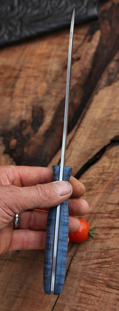 - Previous customers say this knife becomes their favorite most used knife in the kitchen. You can spend the same amount or more on a Henckels or Wusthof but this knife will feel better in your hand and be much easier to keep sharp. A couple passes on the strop every week or two, takes about 10 seconds to keep it hair shaving sharp. See my sharpening instructions at CTKNIVES.COM. The sharpening strop comes with the knife.