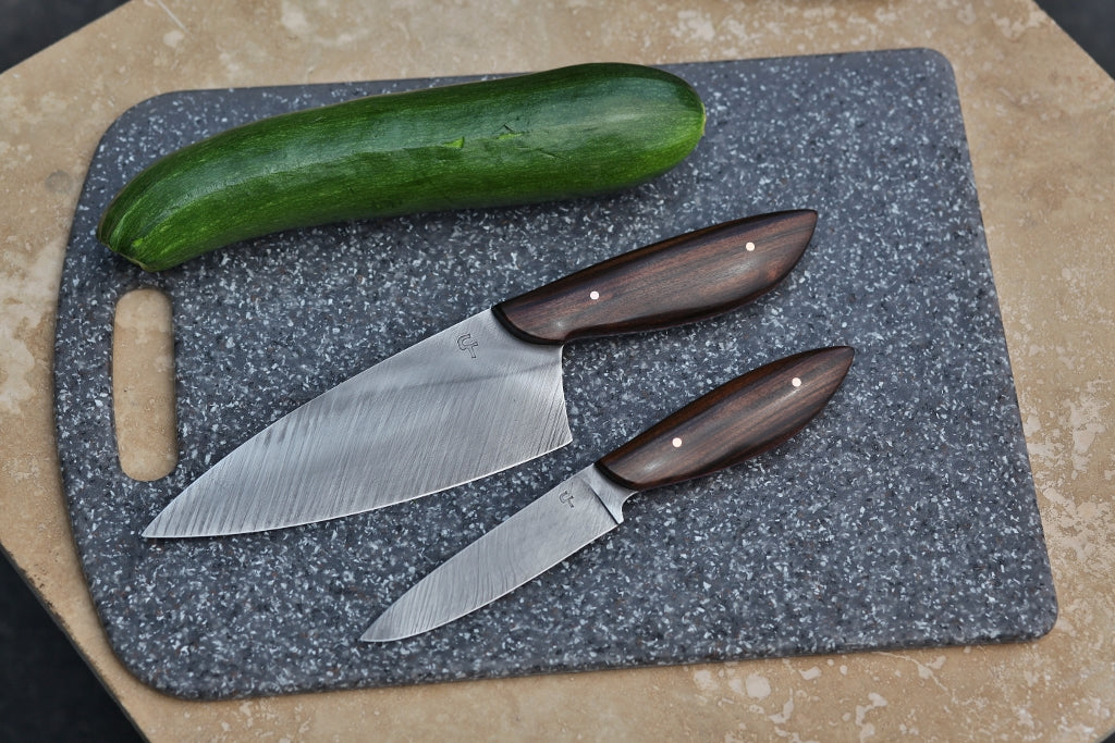 - Chefs knife is 11 inches over all, cutting edge is 6.25 inches long, the paring is 8.25 inches over all, cutting edge 4 inches.