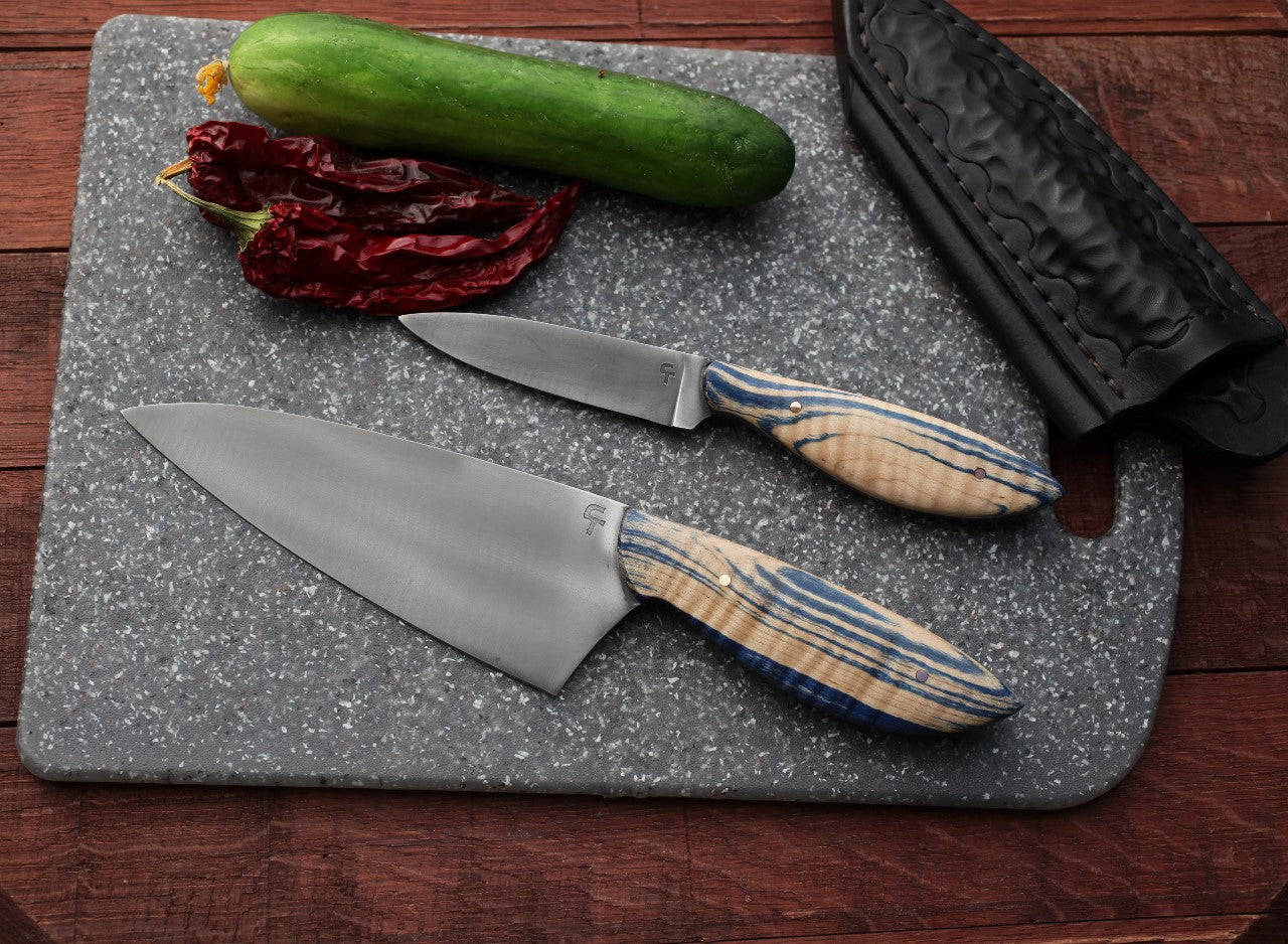 Custom chefs set, blue/blond maple