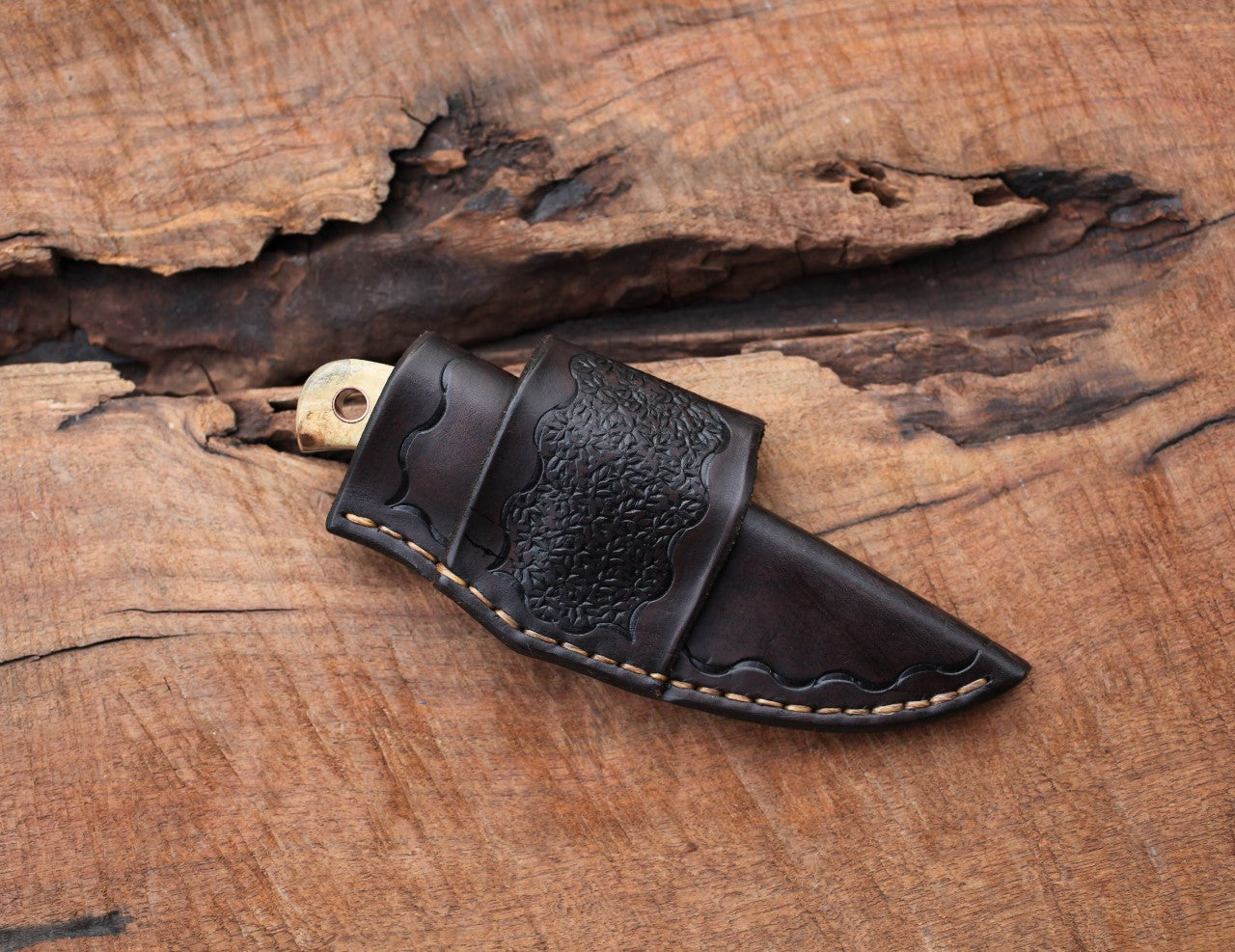 - Horizontal carry leather sheath. I wet form it to conform to the knife for a snug fit. Worn on the left front for right hand draw, concealable under a long shirt.