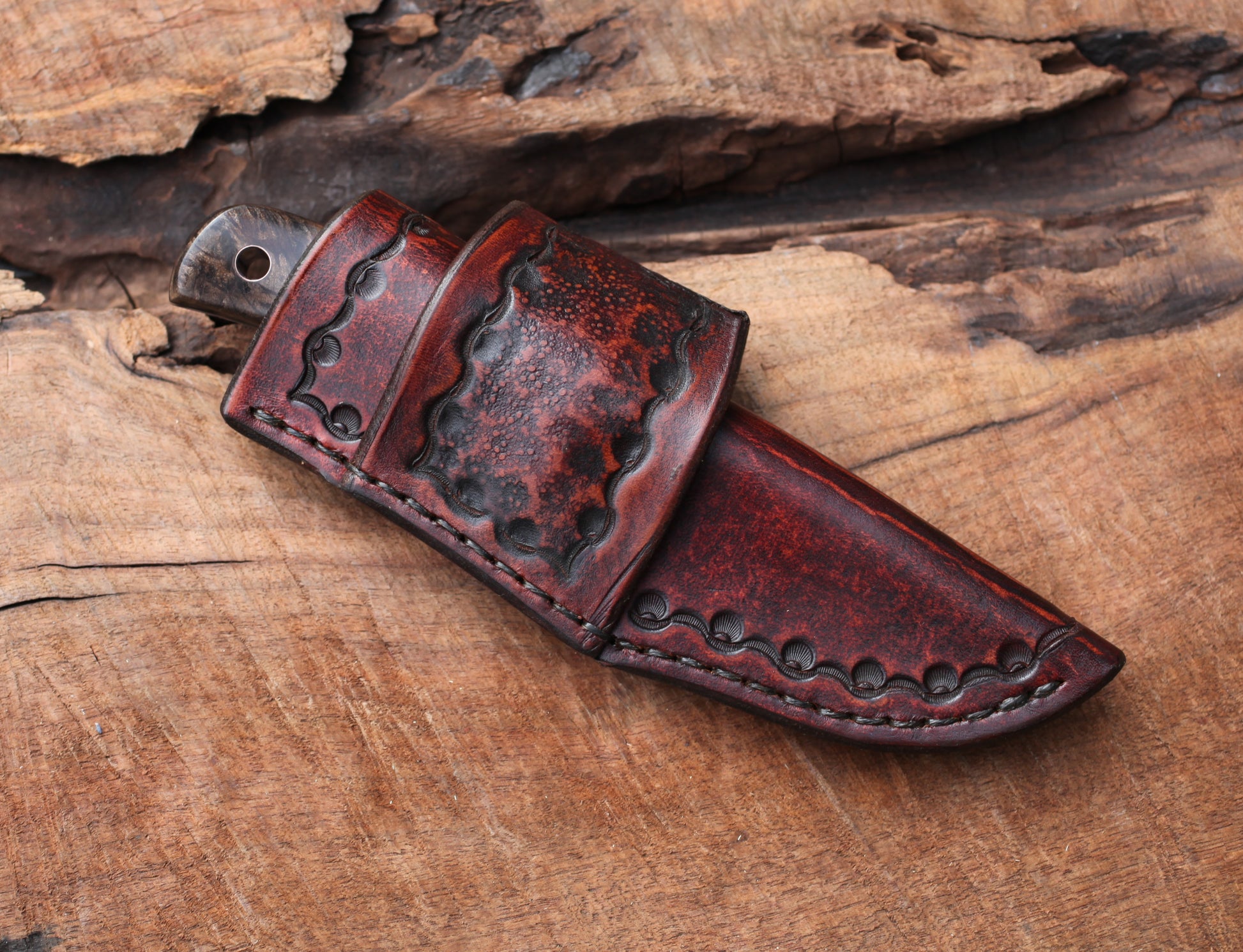 - Custom fit, hand sewn and tooled heavy leather horizontal sheath, Concealable under a long shirt.