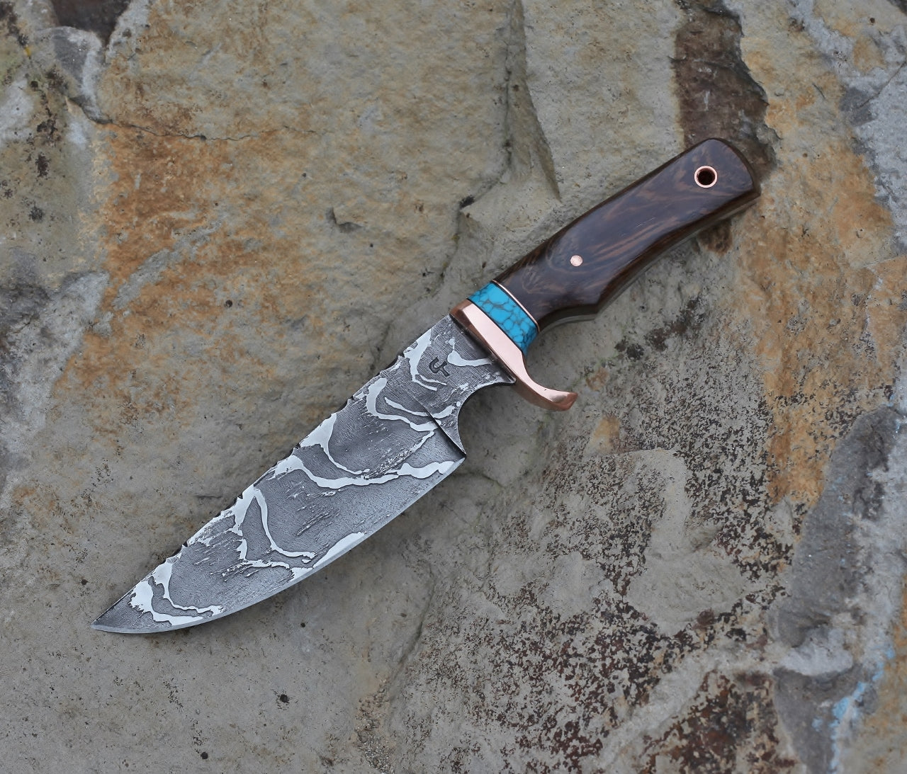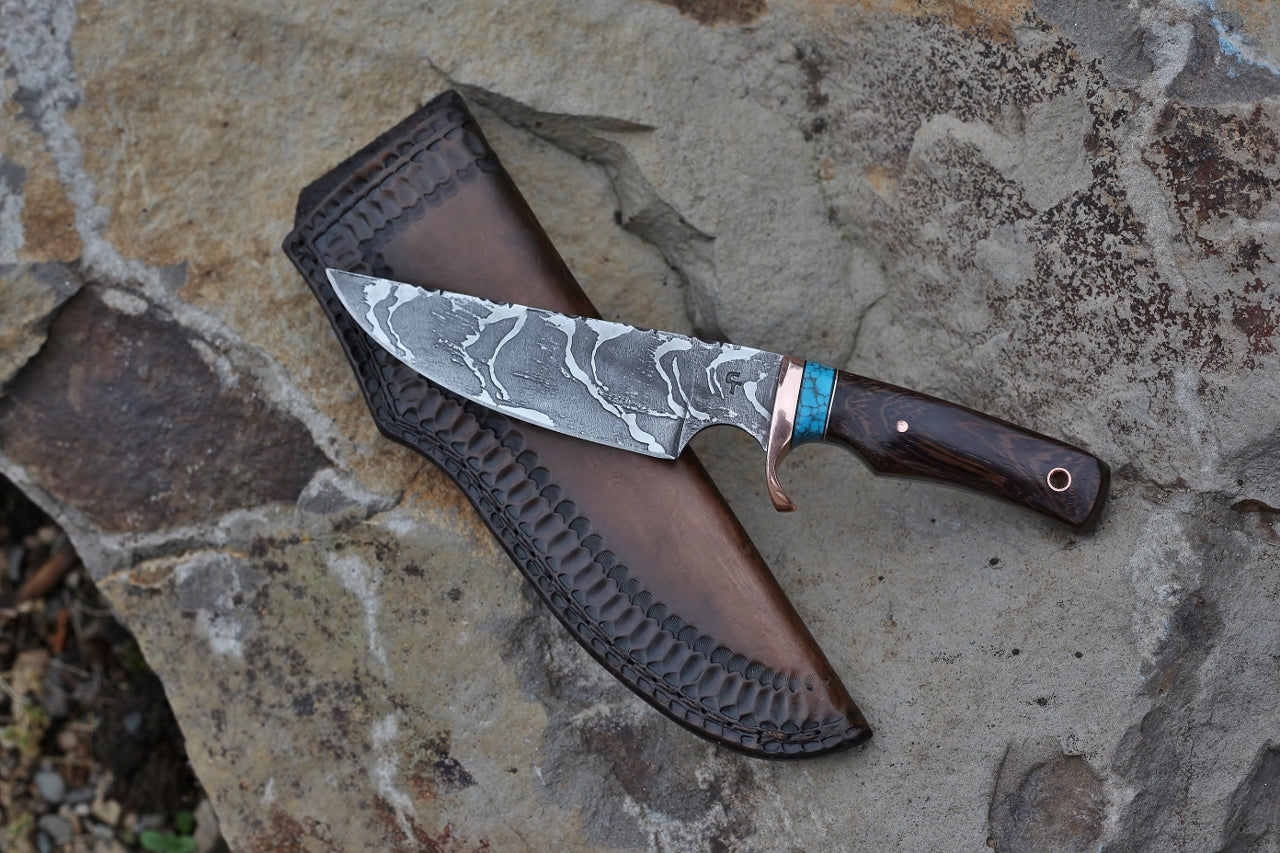 From my shop in the mountains of North Idaho. Lumber mill saw steel is reborn. Reground, oil heat treated, tempered and etched, 3/16th inch thick the steel is from an old lumber mill circular saw. The steel holds a very good edge and is easy to resharpen back to razor sharpness.