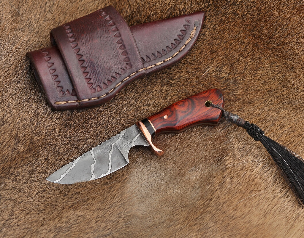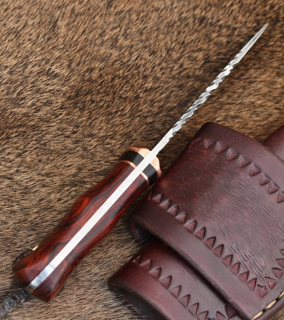 - Handle is S. American cocobolo wood with water buffalo spacer and copper fittings.
