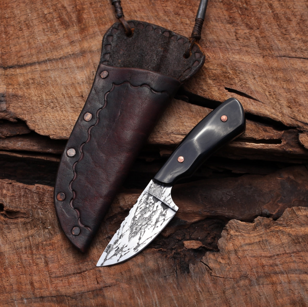 - Copper tacks bind the custom tooled leather sheath, leather cord is easily adjustable.