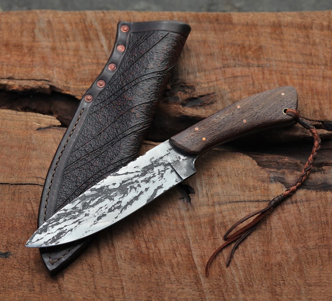 - Heavy weight leather sheath is hand tooled and wet molded to this knife. Knife is secure and deeply seated in the sheath.