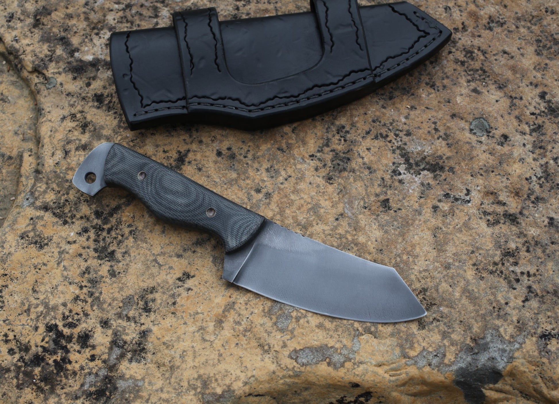 Made for the camp or walkabout. Not to big, easy to carry. Your ready to go..... Batton your kindling, skin your game and prepare your meal. Deep bellied blade allows you to use as a chefs knife by not hitting your knuckles when slicing.