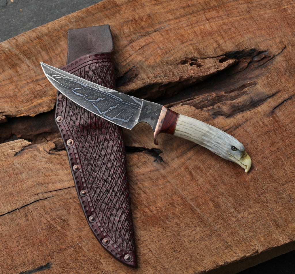 Eagle knife, carved antler
