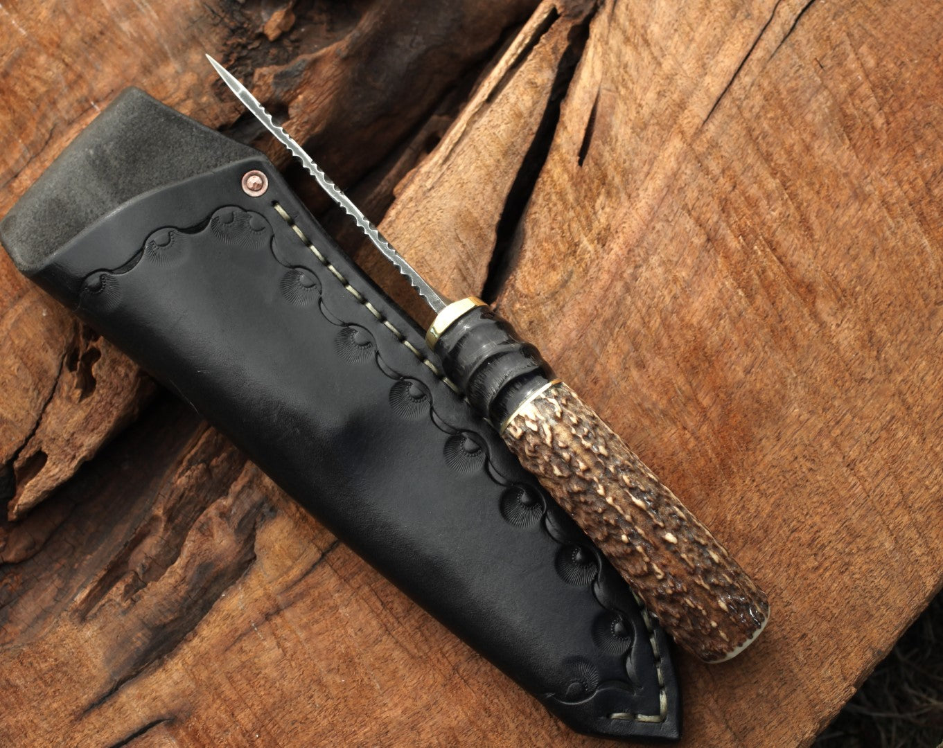 Very nice piece of elk antler combined with African antelope horn and brass, a nice fit in hand
