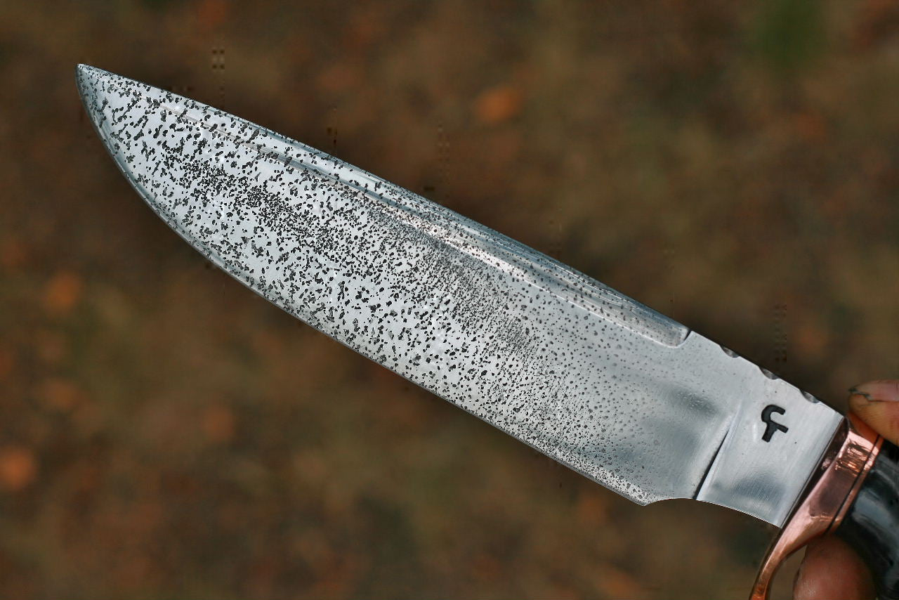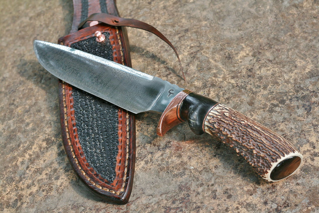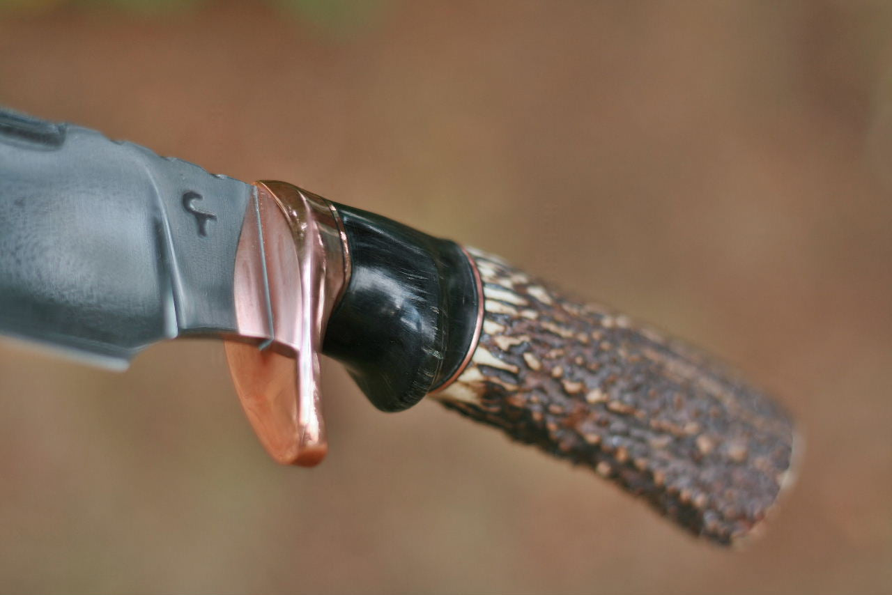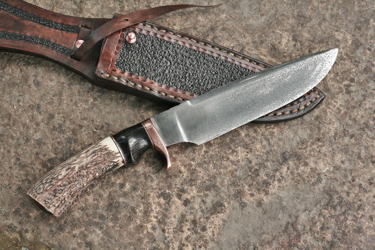 Keywords: African horn, Idaho elk, jasper stone, blade, copper,etched, custom, fancy fighter, gallery,