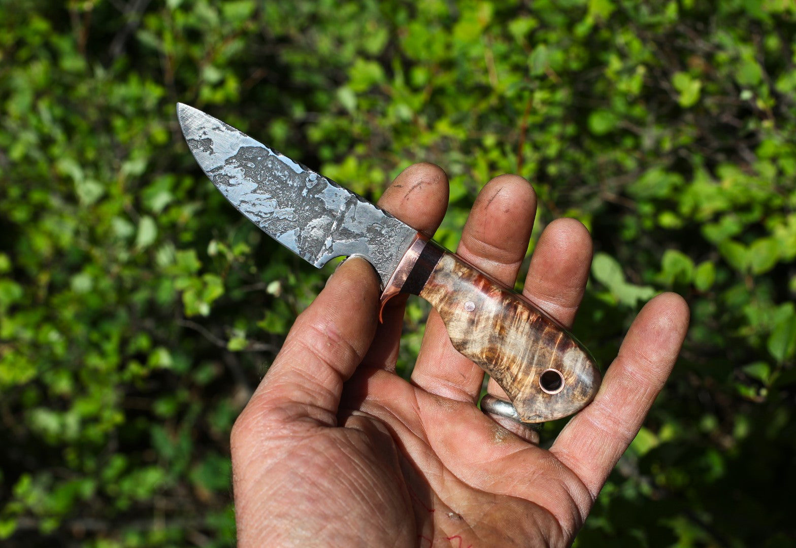 - Keywords: custom, knife, knives, not Damascus, handmade, one of a kind, small hunter, utility, 8670 tool steel, Trappers Post, American Trappers, skinning, Utah, dh, Wyoming, every day carry, backwoodsman