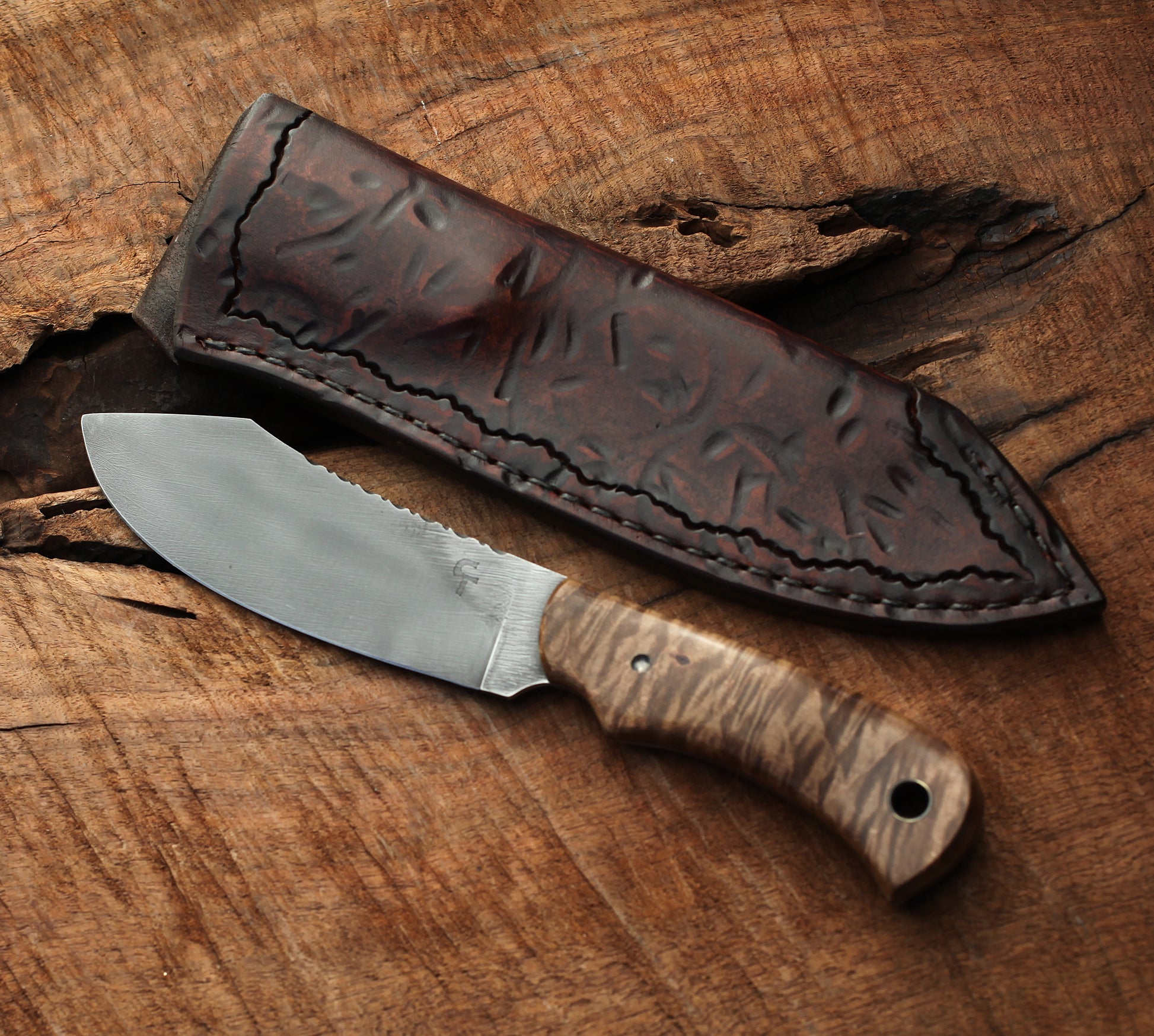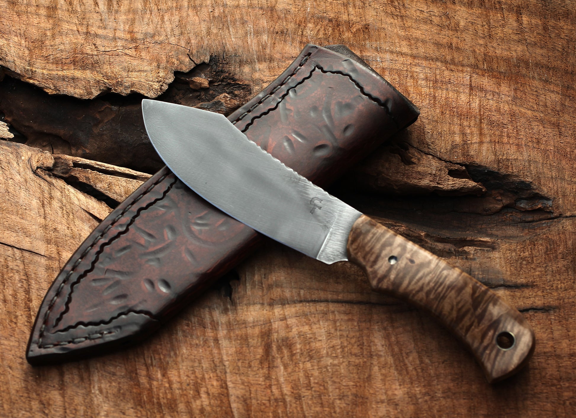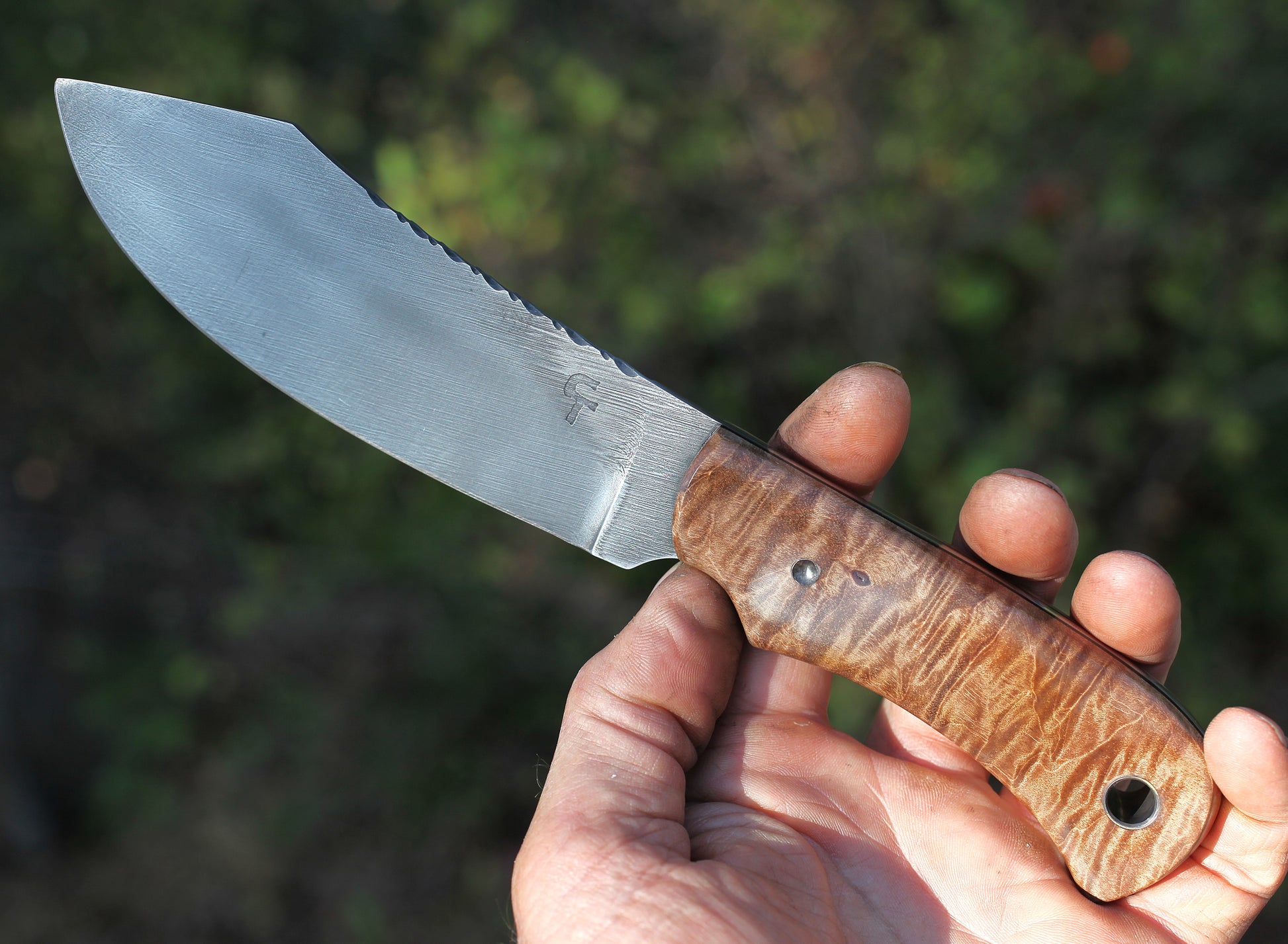 Nessmuk hunting knife, figured maple