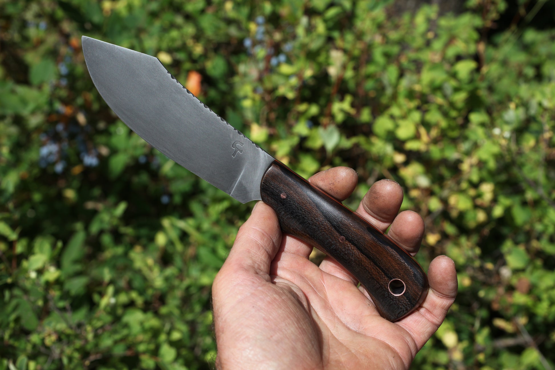 From my shop in the mountains of North Idaho: Handcrafted from 1/8 inch thick lumber mill saw steel, holds a great edge while being easy to maintain with the sharpening strop provided